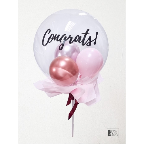 One air-filled crystal clear balloon with the word ‘Congrats!’ – Size approx. 20 to 25 cm diamater.